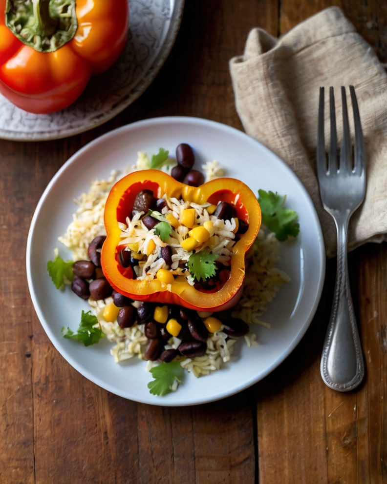 • Description: Bell peppers stuffed with rice, beans, corn, and spices — nutritious, filling, and easy to prepare for multiple meals.